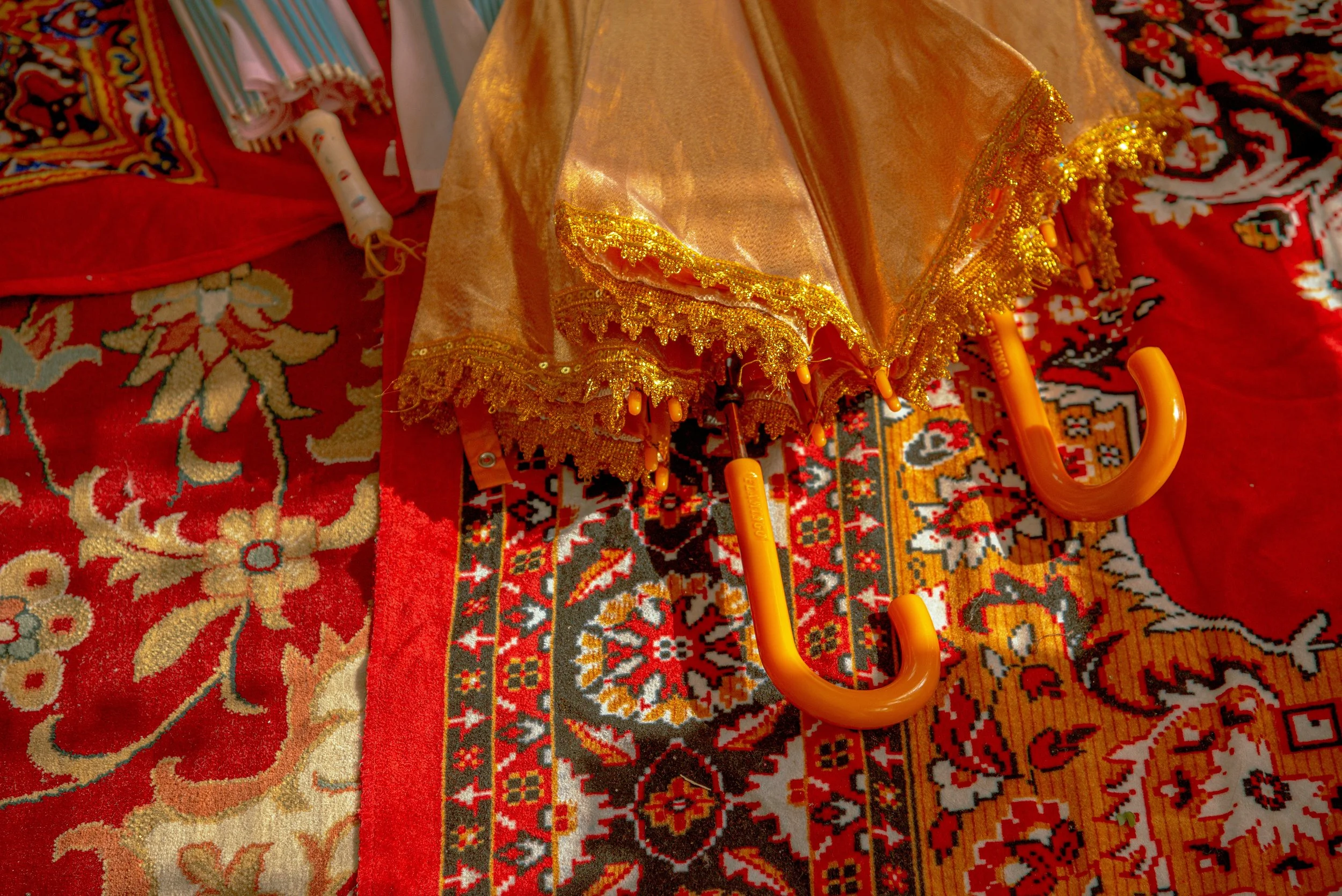 A truly heartfelt moment in the day is the honoring of the parents. The parents sit at the center of the room while the bride and groom, holding above them golden umbrellas, provides them with shade. This signifies their gratitude for their parents sacrifices to care for them and a promise to return the protection and love they were given. The bride and groom lays in the lap of their parents, for a moment kids again, comfortable and at ease in their embrace. They listen together as the master of the ceremony speaks on the importance of looking to their parents as models for their marriage.